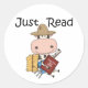 Il suffit de lire T-shirts, sweat - shirts à capuche, tasses, cartes, autocollants, boutons, magnets, mousepads, journaux, cadeaux de lecture, vêtements et autres thèmes de lecture qui promeuvent la lecture de façon mignonne! Une vache avec un casquette de paille et une fourche repose contre une balle de foin avec un livre !