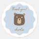 Un adorable petit ourson en peluche sur un arrière - plan bleu moderne ondulé pour une façon amusante de remercier vos invités de fête. Modifiez le texte pour customiser. Art original de Nic Squirrell.