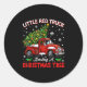 Sticker Rond Little Red Truck Hauling A Christmas Tree