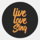 Sticker Rond Live Love Chanteur Sing Songwriter Karaoke Lover