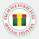 Livraison spéciale de l'autocollant rond du Pôle Nord. Joli design circulaire avec logo de boîte cadeau. Faites votre propre autocollant de timbre-poste pour les forfaits de Père Noël Workshop, les cadeaux et les lettres d'envoi surprise. Disponible en petite et grande taille.