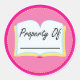 Sticker Rond Livre Rose, Propriété De Lecture Plaques