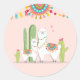 Sticker Rond Llama Baby shower Alpaca Fiesta Mexicaine Cactus
