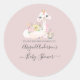Adorable lama de bébé blanc avec des fleurs roses sur ces autocollants pour correspondre à notre invitation. Consultez notre collection correspondante de produits de fête et de produits pour bébés.