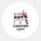 Sticker Rond Llamacorn Squad Funny Unicorn Llama Squad Christma