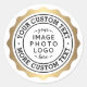 Sticker avec votre logo, image ou photo d'entreprise personnalisé dans un faux dégradé de couleur or (pas de vrai papier) bordé ondulé et texte circulaire.