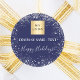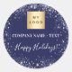 Un arrière - plan bleu marine classique, décoré de parties scintillant faux argentées, brille. Personnalisez et ajoutez votre entreprise, le logo de l'entreprise et un texte. Texte : Joyeuses fêtes! écrit avec un script de style de lettres à la main moderne.
