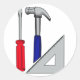 Ce tournevis, marteau et carré sont les outils les plus utilisés pour tout constructeur ou réparateur. Grand art imprimé pour les cartes de visite ou la publicité.