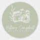 Sticker Rond Logo de photographie simple vert sauge promotionne