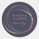 Les autocollants monogrammes élégants sont munis d'un logo abstrait en or faux rose, encerclant votre nom et/ou nom d'entreprise dans un script de calligraphie moderne et bloquant les lettres sur un arrière - plan bleu nuit. REMARQUE : IL N'Y A PAS DE FOILE D'OR SUR CE PRODUIT. L'effet or rose est créé à l'aide de subtiles variations de couleur qui imitent l'apparence du papier peint.