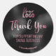 Logo en Merci d'encre noire en texte rose. VEUILLEZ NOTER : Ces autocollants sont imprimés avec de l'encre standard et n'auront aucun brillant métallique.