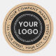Étiquette d'adresse de retour d'entreprise avec votre logo, image ou photo personnalisé sur un cercle noir au centre, ainsi que le nom et l'adresse de retour de votre entreprise dans une police sans-serif moderne sur un papier papier IMPRIMÉ Kraft look arrière - plan.