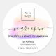 Un autocollant pour la promotion de la réouverture de votre entreprise d'architecte d'intérieur après Covid-19, le virus de la couronne. Un arrière - plan blanc avec des touches de brosse peintes de couleur pastel clair, rose, violet, jaune, faux or. Le texte : Nous sommes ouverts. Personnalisez et ajoutez le logo, le nom, l'adresse et les coordonnées de votre entreprise.