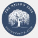 Sticker Rond Logo Rustic Modern Navy Blue & White Willow Tree