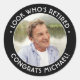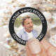 Add an elegant personalized touch to retirement party favors and invitations with stylish black and white round stickers / envelope seals. The picture and all wording on this template are simple to customize. The modern black and white design features one photo of the retiree and retro vintage art deco typography. It can be customized for any occasion or to include a favorite quote or funny saying. The minimal classic design has a professional look suitable for him or for her, a retiring coworker, employee, friend or family member. Cheers, Congratulations and Happy Retirement!