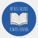 Livres personnalisés Livre Lover Classic Round Sticker conçu par Nisha Prabhu CuteHomeGifts. Belle illustration de livre avec message'' MY BEST AMI. TOUJOURS POUR TOUJOURS.'' Parfait cadeau pour les amateurs de livre. Entièrement Personnalisable. Personnalisez avec votre propre message, devis ou texte.