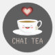 Love Chai thé design avec coeur d'amour et mignonne tasse de style kawaii.