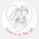 Sticker Rond Love Pink And White Cartoon Bride & Groom Mariage