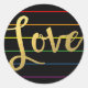 Sticker Rond Love Rainbow Pinstripe LGBT Faux Gold Foil