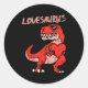Sticker Rond Lovesaurus Trex Dinosaur Heart Cute Valentines Day