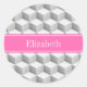 Sticker Rond Lt Grey Wht 3D Look Cube HotPink #2 Nom Monogramme