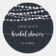 Cette étiquette de faveur de salle de mariage avec lumières de chaîne rustiques est parfaite pour une simple douche de mariage. Le design présente de belles lumières de chaîne peintes à la main sur un fond bleu foncé.