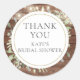 Une élégante douche nuptiale merci autocollant avec de jolies lampes à cordes et feuilles délicats aquarelle sur un arrière - plan rustique en bois. Ce design chic peut être personnalisé avec votre nom. Conçu par Thisisnotme©