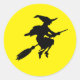 Sticker Rond Lune jaune et sorcière volante noire Halloween
