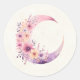 Sticker Rond Lune rose Croissant avec de jolies fleurs
