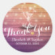 Mariage Favor Merci Sticker Modèle - Élégant Script de Lettering, Lunettes de Champagne Vintage et lumières à cordes sur Rustic Wood Arrière - plan. Un Design Parfait Pour Votre Grand Jour ! Tous Les Style De Texte, Couleurs, Tailles Peuvent Être Modifiés En Fonction De Vos Besoins.