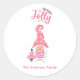 Sticker Rond Lutin de Noël Fille Rose avec Chapeau de Vigneron