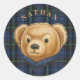 Sticker Rond Luxe Preppy Plaid Teddy Bear Head