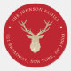 Sticker Rond Luxury Gold Reindeer Red Christmas Return Address