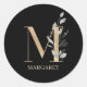 Lettre M monogramme floral. Lettre M en texture brune dorée accentuée de feuilles verts composés d'aquarelle, fleurs de fleurs et éclaboussures d'or fondu. Personnalisé avec nom dans la police correspondante.