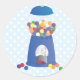 Une machine ludique à gumball bleu, complètement unique et démodée en même temps.