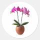 Sticker Rond Magenta Blooming Orchid Flowers in a Pot