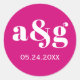 Magenta rose simple et élégant autocollant mariage monogramme. Il affiche votre initiale et la date de votre mariage en blanc sur arrière - plan rose chaud.
