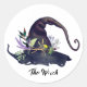 Ces autocollants personnalisés de chapeau de sorcière vintage détiennent l'énergie de l'artisanat naturel d'une sorcière. Un chapeau de sorcière noir/gris rustique vintage avec une ficelle naturelle de feuilles d'herbes, lavande violette, beau pissenlit, eucalyptus, chardon-Marie, trèfle rouge cicatrisant. Idées de cadeaux pour les sorcières, sorcière verte, sorcière solitaire, sorcière de cuisine.