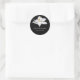 Blancs Magnolia Elégant Mariage Noir et Blanc Classic Round Sticker conçu avec une fleur de magnolia blanc brillant sur un arrière - plan noir avec texte blanc. Le texte comprend : Les prénoms et la date du Mariage de la mariée et de la mariée. Pour personnaliser, insérez simplement vos détails dans notre modèle facile, en remplaçant l'exemple de texte. N'oubliez pas de consulter la collection complète White Magnolia Elegant Wedding Black and White pour les cartes et accessoires correspondants.