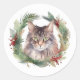 Sticker Rond Maine Coon Chat Noël Wreath Festive Kitten