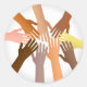 Illustration d'un groupe de mains diverses de différentes cultures et nationalités qui se touchent et se touchent. Conception conceptuelle montrant les gens se rassemblant et se donnant mutuellement aide et soutien. Image disponible sur divers cadeaux et produits.