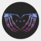 Autocollant Rond Classique Forme de Coeur d'Amour Mains Gothiques Squelette Rose Violet