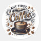 Sticker Rond Mais First Coffee Art - Design Or Stylé