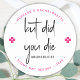 Mais êtes-vous mort ? Kit de secours contre la gueule de bois ! Ces autocollants amusants de cadeau pour enterrement de vie de jeune fille sont parfaits pour créer vos propres kits de récupération contre la gueule de bois pour vos invités, essentiels si vous prévoyez un week-end entre filles. Visitez notre collection de cadeaux pour enterrement de vie de jeune fille, cadeaux de mariage, et kits de gueule de bois et souvenirs de mariage. Personnalisez avec le nom et la date. COPYRIGHT © 2020 Judy Burrows, Black Dog Art - Tous droits réservés. Mais êtes-vous mort ? Kit de secours contre la gueule de bois personnalisé Autocollant rond classique