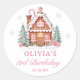 Sticker Rond Maison en pain d'épices Noël rose Anniversaire