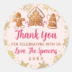 Sticker rond rose Maison de pain d'épice Merci de fête classique