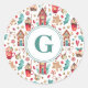 Sticker Rond Maisons Monogramme & Motif Sucré 1,5 pouces