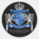 Create your very own aristocratic Coat of Arms, emblème, indédicaca or Family Crest with this beautiful, classic escutcheon or shield design. Cobalt Blue patterns decorate a shield topped with silver crown and flanked by medieval heraldic lion or griffin. A matching top banner holds your custom wedding date / birth date / slogan or battle cry. The shield has space for your monogram initials. Bottom banner carries your family name. Donc, le there est l'espace below for your favorite quote, motto or message. Replace the sample text with your own for a personalized vend. A gender neutral design that will work for families, groups, couples ou individus. Makes a wonderful gift for Wedding, Anniversary, Birthday, Retirement, Promotion, Father’s Day, Bachelor Party, Wedding Shower, Graduation, International Heraldry Day, Medieval or Fantasy-Parties and other special d’occasion.