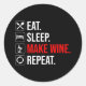 Sticker Rond Manger. Dormir. Fais Du Vin. Recommencer