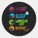 Sticker Rond Mangez Sleep Warrier Chat Répéter Chat